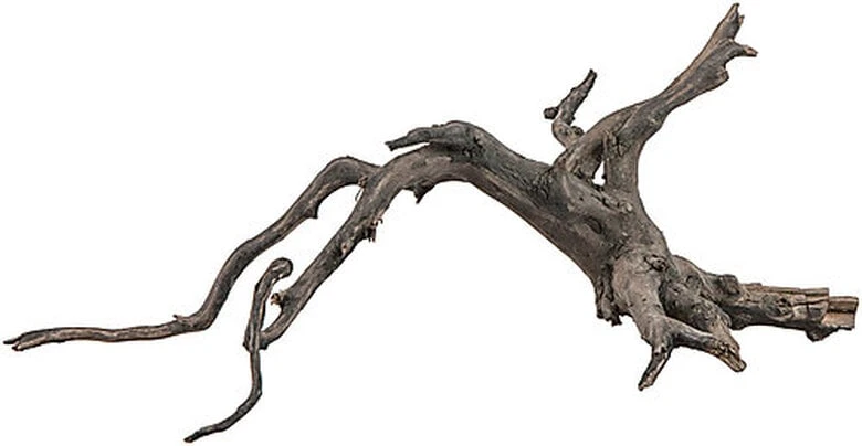 Sa couleur brun foncé, même à l’état sec, semble presque noire sous l’eau. Si la racine doit être placée librement dans l’aquarium, elle doit être trempée avant l’insertion afin qu’elle ne flotte pas. Alternativement, elle peut être lestée dans l’aquarium à l’aide de pierres ou d’autres racines.