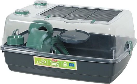 Nouvelle cage éco-conçue EHOP pour hamster avec bac en plastique 100% recyclé, elle s’intègrera facilement dans les intérieurs actuels grâce à ses coloris tendances déclinés de la gamme d’accessoires EHOP.