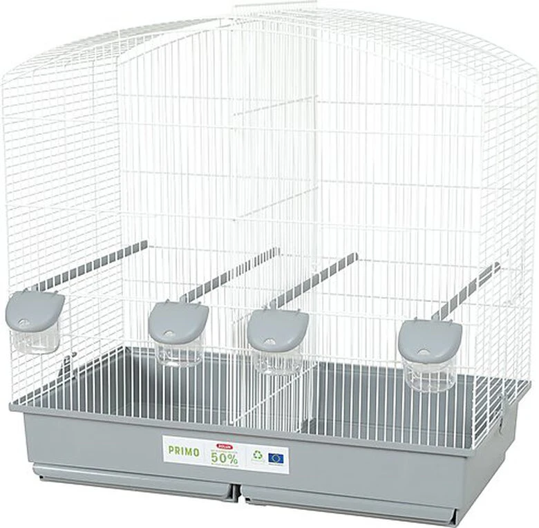 Nouvelle cage éco-conçue PRIMO Cati Family pour oiseaux domestiques avec bac en plastique 50% recyclé, elle s’intègrera facilement dans les intérieurs grâce à ses coloris classiques et actuels gris clair et blanc.